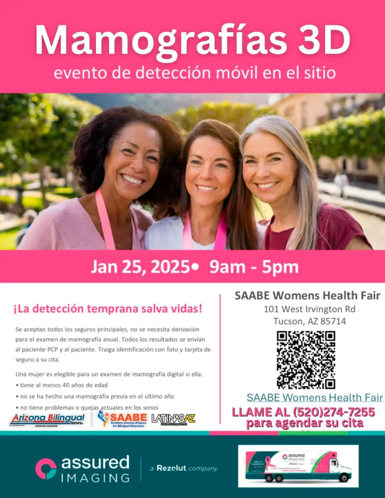 SaabeAZ, AZ Bilingual en colaboración con Assured Imagining regalarán mamografías 3D COMPLETAMENTE GRATUITAS para cualquier mujer sin seguro médico.